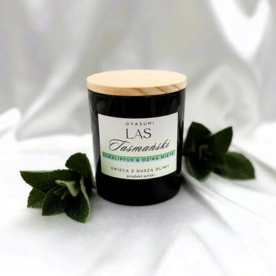 Świeca zapachowa Las Tasmański 200 g | zapach eukaliptus i dzika mięta | 100% wosk z oliwek