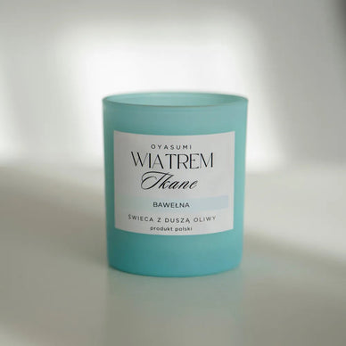 Świeca zapachowa Wiatrem Tkane 160 g | zapach świeża bawełna | 100% wosk z oliwek
