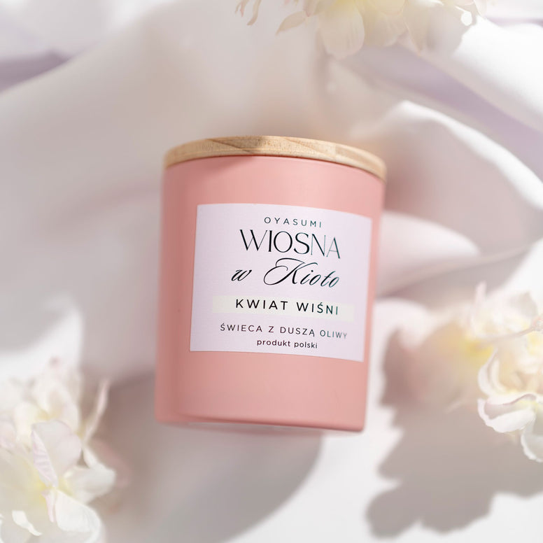 Świeca zapachowa Wiosna w Kioto - 200 g | zapach kwiat wiśni | 100% wosk z oliwek
